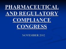 PHARMACEUTICAL AND REGULATORY COMPLIANCE CONGRESS NOVEMBER 2002