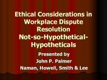 Ethical Considerations in Workplace Dispute Resolution Not-so-Hypotheticals Presented