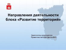 Направления деятельности блока Развитие территорий Заместитель председателя Правительства