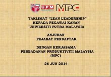 TAKLIMAT LEAN LEADERSHIP KEPADA PEGAWAI KANAN UNIVERSITI PUTRA