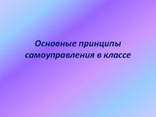 Основные принципы самоуправления в классе Структура ученического