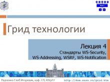Грид технологии Лекция 4 Стандарты WS-Security WS-Addressing WSRF