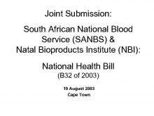 Joint Submission South African National Blood Service SANBS