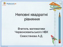 Неповні квадратні рівняння Вчитель математики Червонохвильського НВК Севостянова