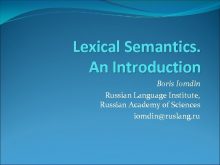 Lexical Semantics An Introduction Boris Iomdin Russian Language