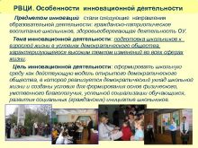 РВЦИ Особенности инновационной деятельности Предметом инноваций стали следующие