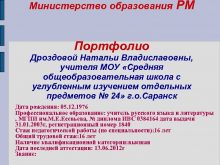 Министерство образования РМ Портфолио Дроздовой Натальи Владиславовны учителя