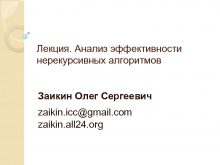 Лекция Анализ эффективности нерекурсивных алгоритмов Заикин Олег Сергеевич
