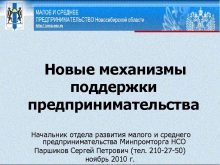 Новые механизмы поддержки предпринимательства Начальник отдела развития малого