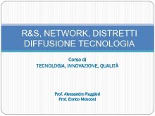 R S NETWORK DISTRETTI DIFFUSIONE TECNOLOGIA Corso di TECNOLOGIA