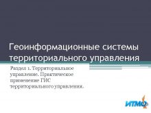 Геоинформационные системы территориального управления Раздел 1 Территориальное управление