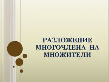РАЗЛОЖЕНИЕ МНОГОЧЛЕНА НА МНОЖИТЕЛИ Методические рекомендации Данная