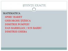 ŞTIINŢE EXACTE MATEMATICA SPIRU HARET GHEORGHE ŢIŢEICA DIMITRIE