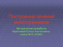 Построение сечений многогранников Методические разработки Коротковой Елены Анатольевны