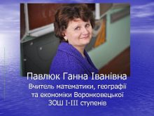 Павлюк Ганна Іванівна Вчитель математики географії та економіки