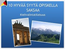 10 HYVÄÄ SYYTÄ OPISKELLA SAKSAA Kielivalintatilaisuus Tampereen kaupunki perusopetus