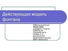 Действующая модель фонтана Работу выполнил Зенин Олег учащийся
