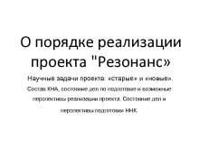 О порядке реализации проекта Резонанс Научные задачи проекта