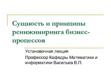 Сущность и принципы реинжиниринга бизнеспроцессов Установочная лекция Профессор