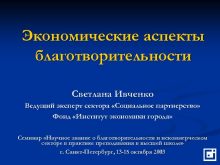 Экономические аспекты благотворительности Светлана Ивченко Ведущий эксперт сектора