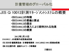 計量管理のグロ バル化 JIS Q 10012計測マネ-ジメントシステムの概要 ISO 10012の特徴 ISO 10012の意義と要点
