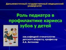 Дальневосточный государственный медицинский университет Роль педиатра в профилактике