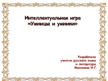 Интеллектуальная игра Умницы и умники Разработала учитель русского