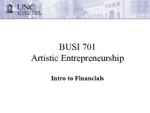 BUSI 701 Artistic Entrepreneurship Intro to Financials
