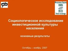 Социологическое исследование инвестиционной культуры населения основные результаты Октябрь