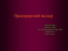 Прокурорский надзор Презентация учебного курса Ст преподаватель каф