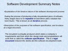 Software Development Summary Notes Explanation of the