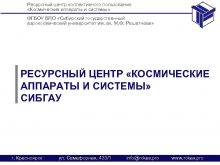 Ресурсный центр коллективного пользования Космические аппараты и системы