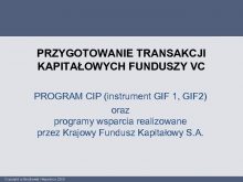 PRZYGOTOWANIE TRANSAKCJI KAPITAŁOWYCH FUNDUSZY VC PROGRAM CIP instrument