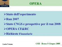 OPERA ØStato dell esperimento ØRun 2007 ØStato CNGS e