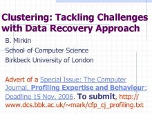 Clustering Tackling Challenges with Data Recovery Approach B