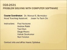 CGS-2531 PROBLEM SOLVING WITH COMPUTER SOFTWARE Course Coordinator