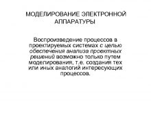 МОДЕЛИРОВАНИЕ ЭЛЕКТРОННОЙ АППАРАТУРЫ Воспроизведение процессов в проектируемых системах