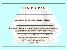 СТАТИСТИКА Аналитическая статистика Лекция 3 Статистическое изучение взаимосвязи