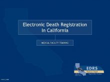 Electronic Death Registration In California MEDICAL FACILITY TRAINING