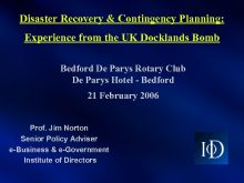 Disaster Recovery Contingency Planning Experience from the
