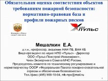 Обязательная оценка соответствия объектов требованиям пожарной безопасности нормативно-правовая
