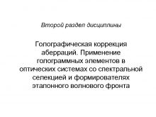 Второй раздел дисциплины Голографическая коррекция аберраций Применение голограммных