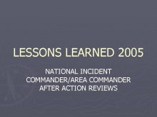 LESSONS LEARNED 2005 NATIONAL INCIDENT COMMANDER AREA COMMANDER AFTER