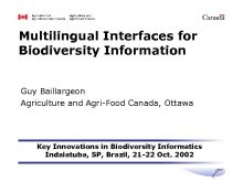 Multilingual Interfaces for Biodiversity Information Guy Baillargeon Agriculture