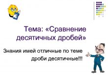 Тема Сравнение десятичных дробей Знания имей отличные по