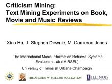 Criticism Mining Text Mining Experiments on Book Movie