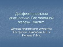 Дифференциальная диагностика Рак молочной железы Мастит Доклад подготовили
