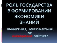 РОЛЬ ГОСУДАРСТВА В ФОРМИРОВАНИИ ЭКОНОМИКИ ЗНАНИЙ ПРОМЫШЛЕННАЯ ОБРАЗОВАТЕЛЬНАЯ