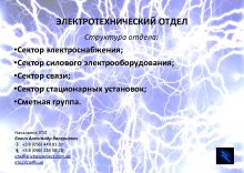 ЭЛЕКТРОТЕХНИЧЕСКИЙ ОТДЕЛ Структура отдела Сектор электроснабжения