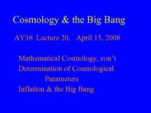 Cosmology the Big Bang AY 16 Lecture